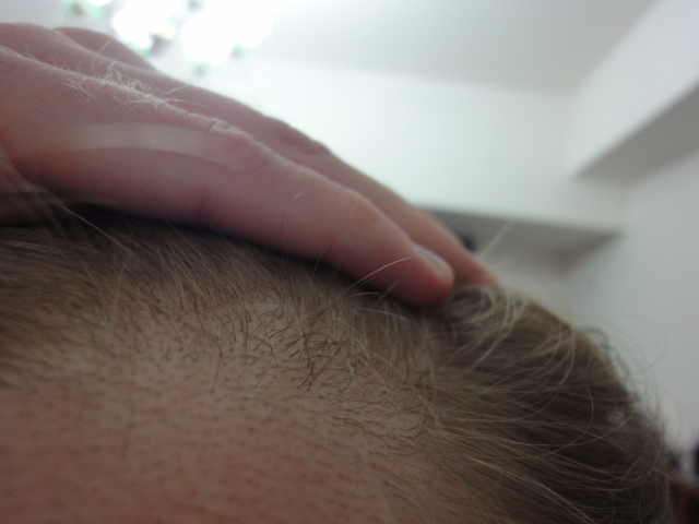 Update 1: I am definitely getting something growing in the temple regions that wasn't there before. I guess this is a good sign at only 1.5 months. Right know it's all just fine blonde vellus hair, but it's quite long for vellus hair. Hopefully this will all turn terminal at some stage.