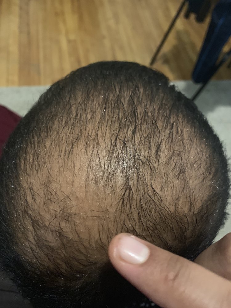 I have a major balding on top left and top right (see image) where in some spots there is hardly any hair follicle. I have been using a Hair growth Shampoo, and also IRestore laser on and off.