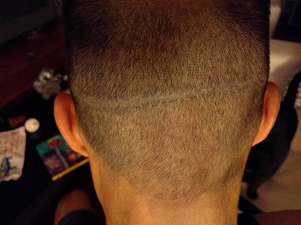 Seeing how another FUT was going to be a lot of money with Dr. Feller, and even with Dr. Feller mentioning that FUE into [my] scar was not guaranteed success, I looked into other options to at least conceal the scar. My hair was receding a lot more and I wanted to buzz it down, not shave, but so self conscious.