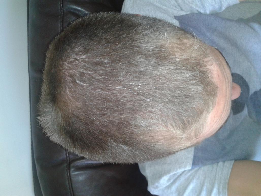 Just thought I would add some more photos, the camera quality is pretty poor but the photos are with a flash and I made sure i took the photos in a very light room, so it wasn't dark at all. I have also been on Cet for about 2 months, i think it has grown a lot of blonde hairs, but I also have small spots around the hair-line, something which a few people have complained about. I also added one of the very first photos i took, to help the comparison. My hair was also buzzed to a grade 3/4 last week, so it is pretty short!