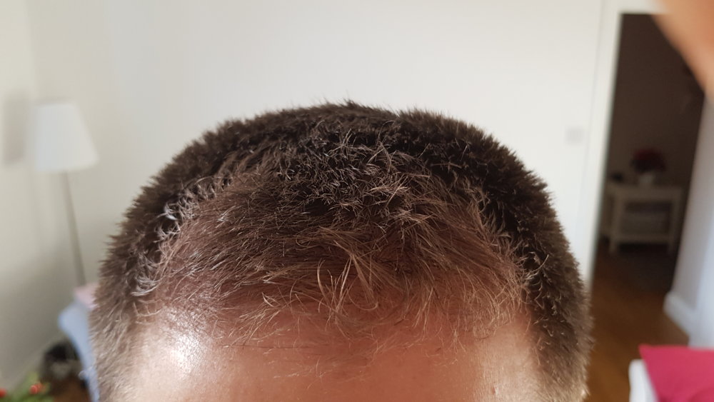 Updated pics with hair much shorter, a grade 5 i think. Also included a close up of hair line. I definitely have some thickening of the lowest hairs at the hair line. I think topical cetirizine is definitely a good addition although i had some significant shedding.