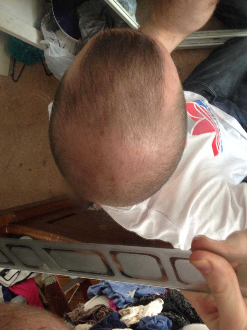 In february 2014 i decided to shave my head to see the exact damage done, in preparation for my journey which i would start in April. My 1st picture will show you my shaved head.