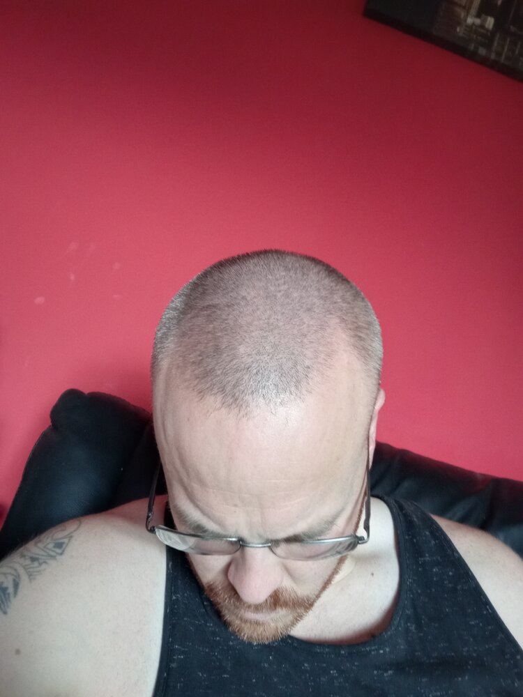 I'm going to use this post to keep a time line of pictures as my hair grows out from diffused thinning at a #0 guard to grown out . Also it will be interesting to see if the things I'm taking to counter the the thinning will have any effect. (Castor oil, dermaroller, Nizoral, ACV rinse, keto diet) .