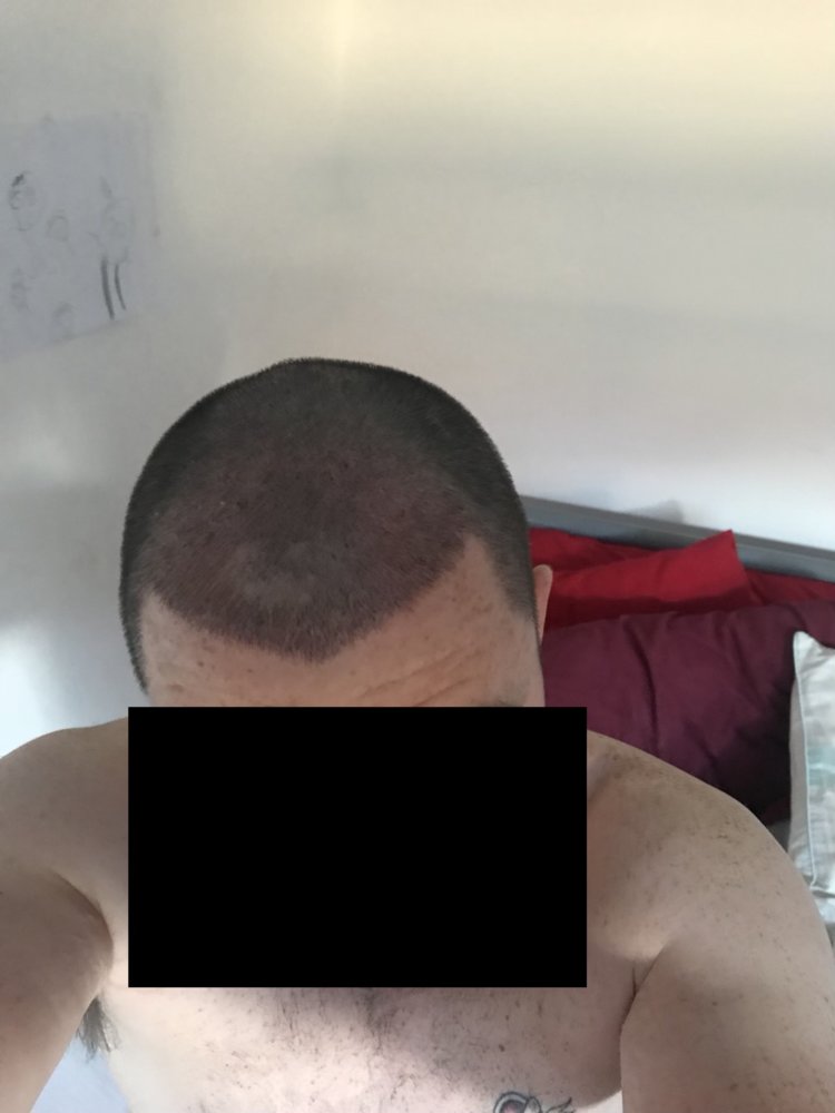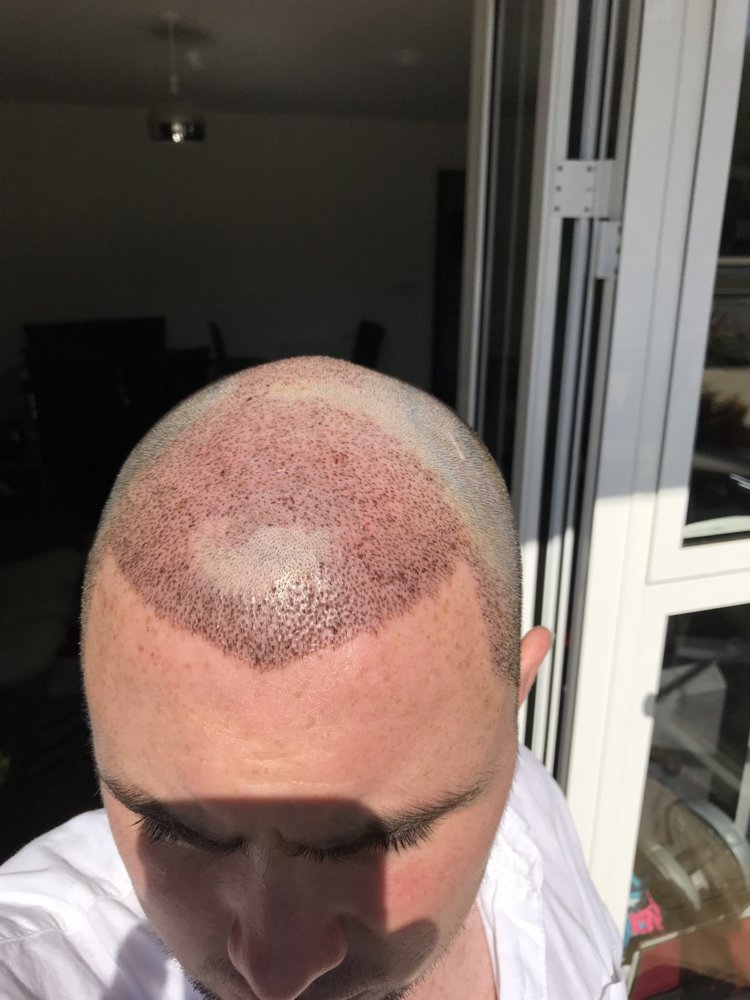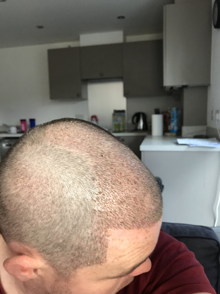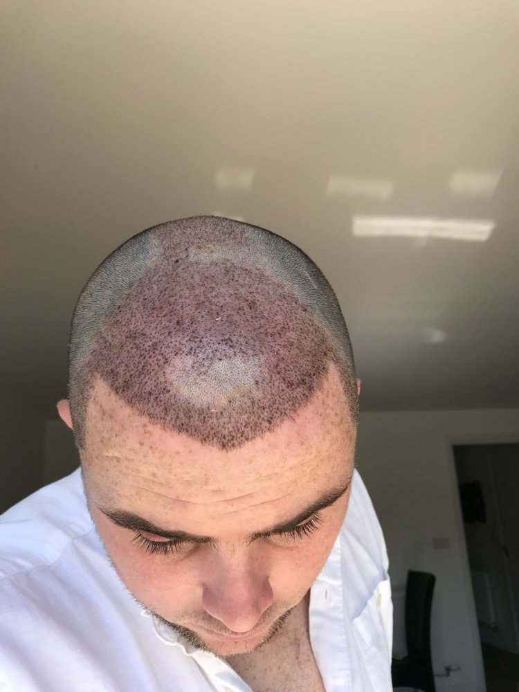 They painted 2300 grafts in my hairline alone this day. I was initially worried about the aggressiveness of the Hairline design but turns out it isn’t aggressive at all , it’s just normal and I’m so used to seeing myself with crap hair it was all a bit of a shock !
