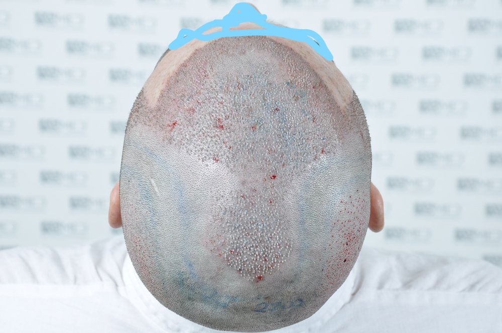 Once head was shave it was back into the photo room and the Dr was there again. He re-drew the hairline and marked the figures on my head before more snaps were taken