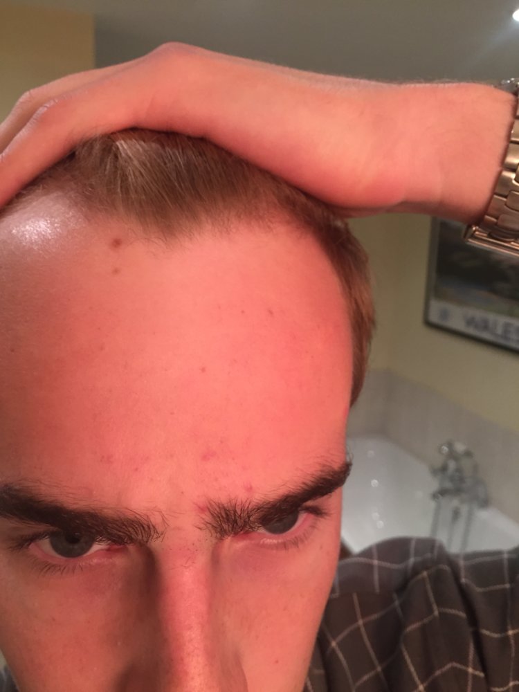 Admittedly my hairline has been high for awhile and even looking back on photos from 2 years ago it is a similar hairline. I have not been noticing excess hair falling off and no-one in my family is bald. My 20y/o brother has had a widow's