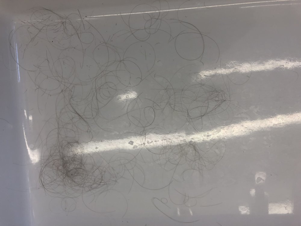 this is from 3 days, not just one. I forgot to mention it. But that are onlythe hair, I collected in the bathroom.