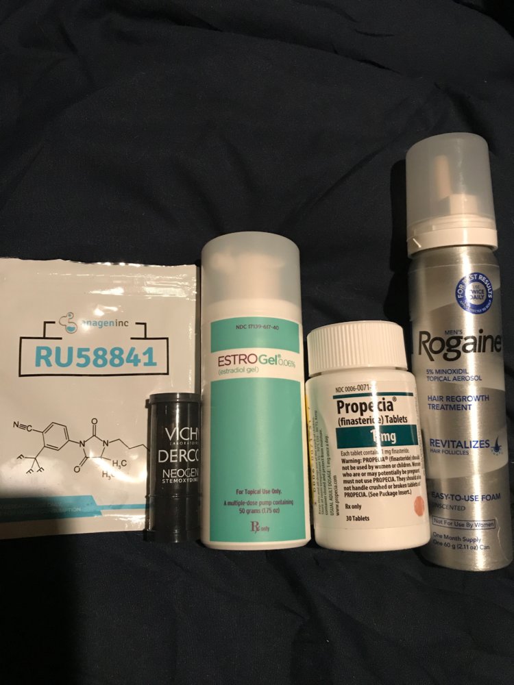 You’re on estrogen, finasteride, minoxidil and you were on RU and it’s thinner? Time to switch out the finasteride for dutasteride, start microneedling, use your estrogen topical right after the needling session.