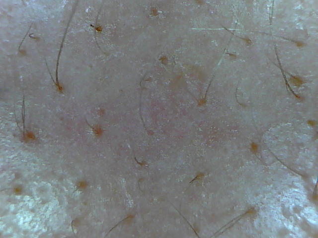 Photos taken today, Middle of of my bald temples. yes, I have a lot of hair growing along my temples/hairline.. but the next pictures were taken right on the middle of them (toughest area to see any results).. about 20 weeks in.. All these holes are hair coming out! not derma rolling holes..! See.. patience and hard core rolling=results. Keep on rolling people!