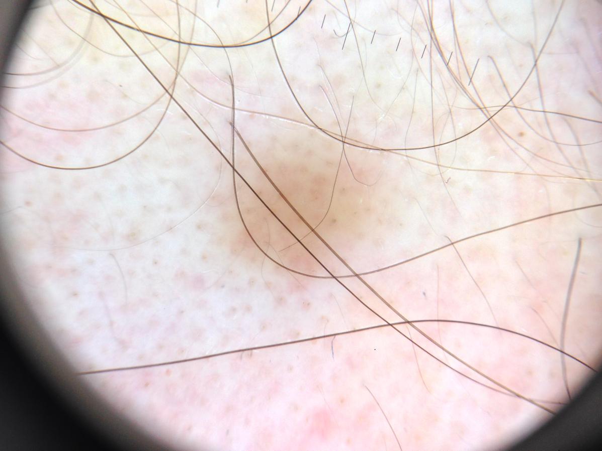 And here there are the microscope pictures i said my doctor took last time. You can see all kinds of new hair growing (some really new, some not so much and also full grown hair) in my crown area. This was taken also before the procedure, so you can see a lot of tiny holes where new hair may or may not start growing.