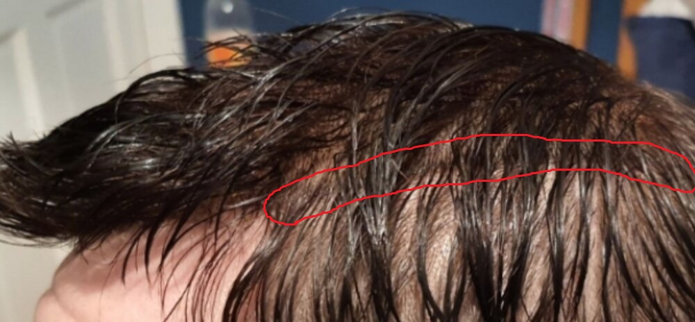 Im covering it with hair fibers at the minute when leaving the house to hide the thinskin rim.