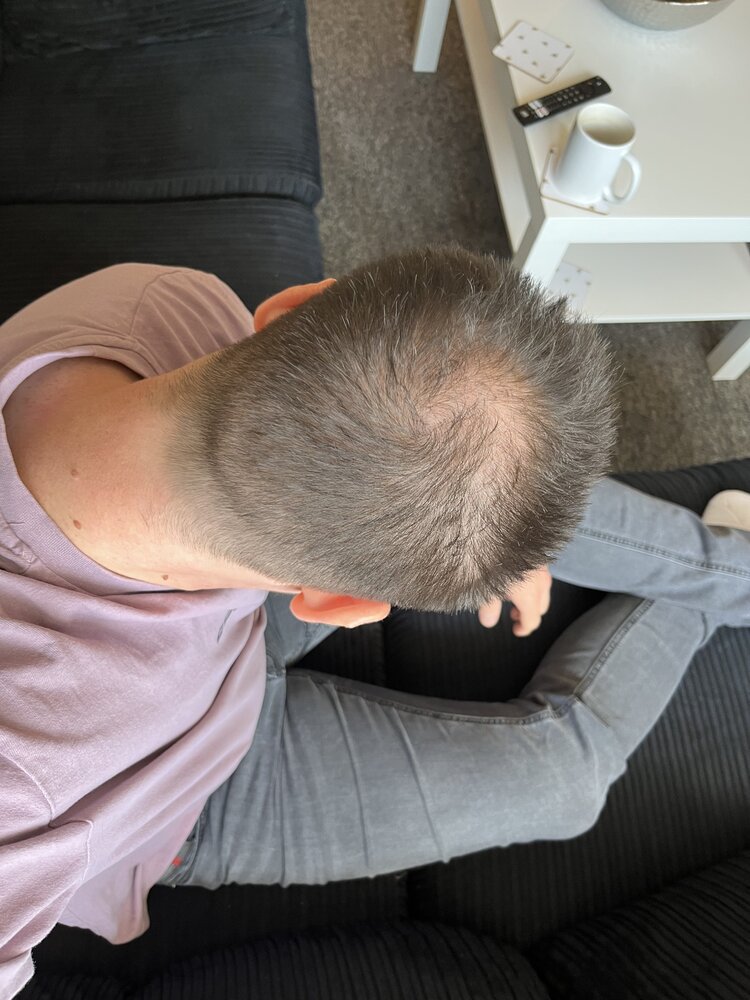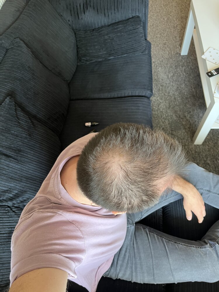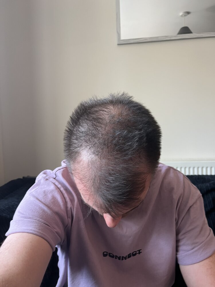 I started noticing thinning on my crown around age 24. I’m now 31 and it has progressed to what I think is a diffuse thinning all over - especially the temples. I’ve added pics of today.