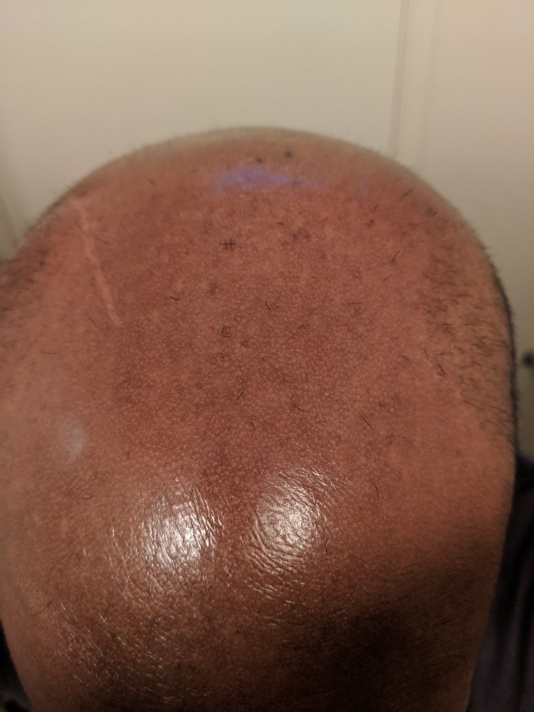 Attached pics. Taken on different days, some right after a buzz and others not so, so don't let the hair size confuse you.