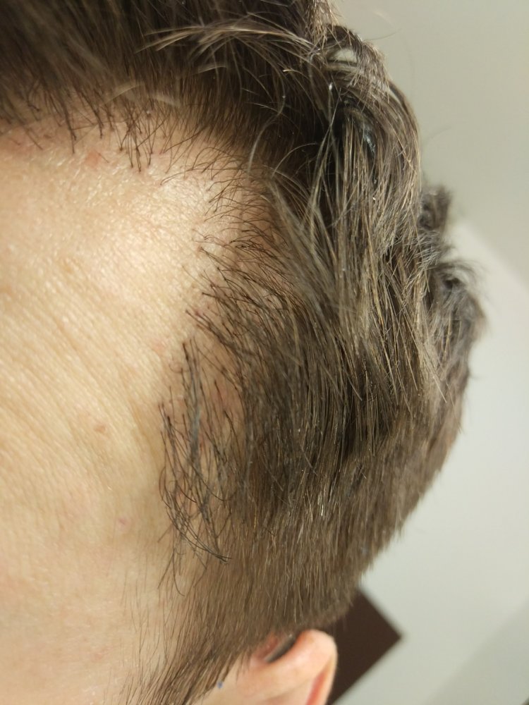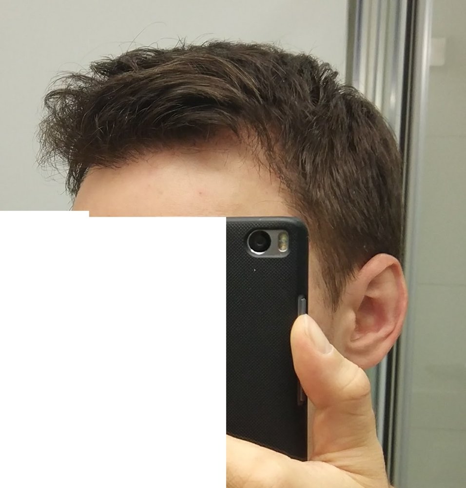 4. The left temple would be OK but.... It is so obvious that smth was done with it. I dont know if the reason is the 2-3-4 grafts are at frontline, or robust structure of hair (right temple grafts are softer), or color, or density (definetely much lower then my natural, at least I had got luck with my natural density) or all together.