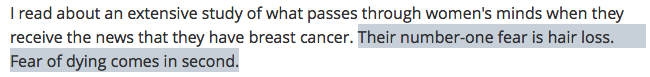 Breast Cancer patients number one fear is hair loss.