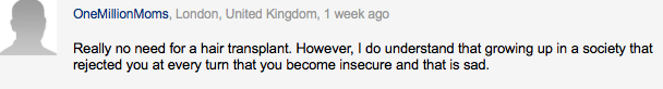 the "Bro, your hair loss is no big deal. Imagine if you were a women!"