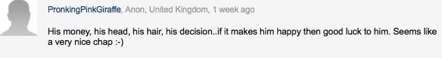 I actually did not agree with his part of the post that this is not attributed to baldness.