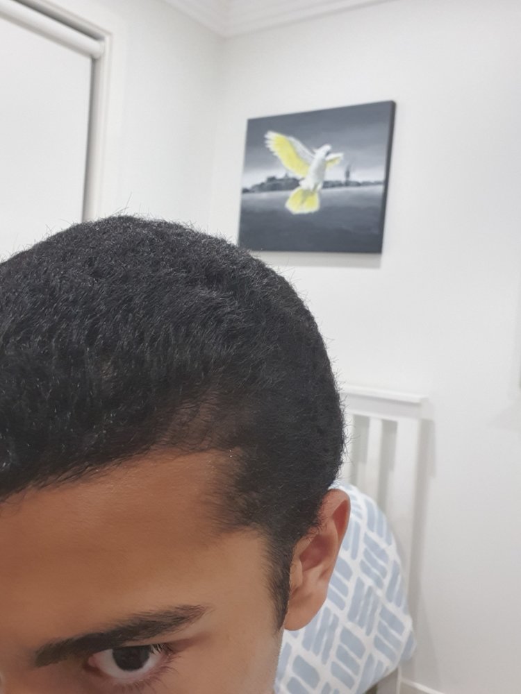 Any opinions notice short blonde hairs near left temple. How my hairline, density everything basically everyone is bald in my family. Hair type is not like anyone in the family or any relative(medium curls fro texture)and head shape is similar to dad.