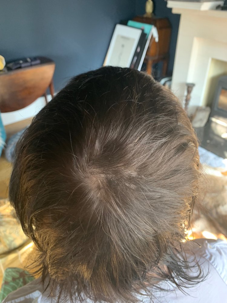 I’ve tried taking photos over the last 12 months. However, with my longish hair style coupled with my fine hair, it’s hard to see much difference or show up my issues. It can look quite different depending on the lighting. And my camera doesn’t seem the best.