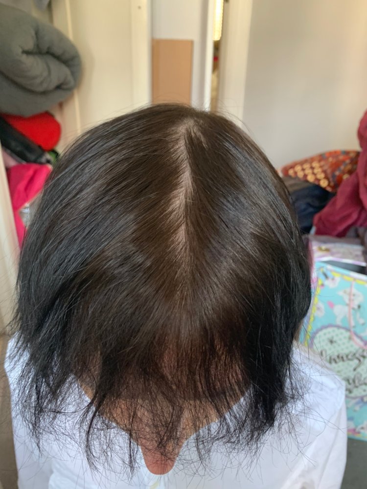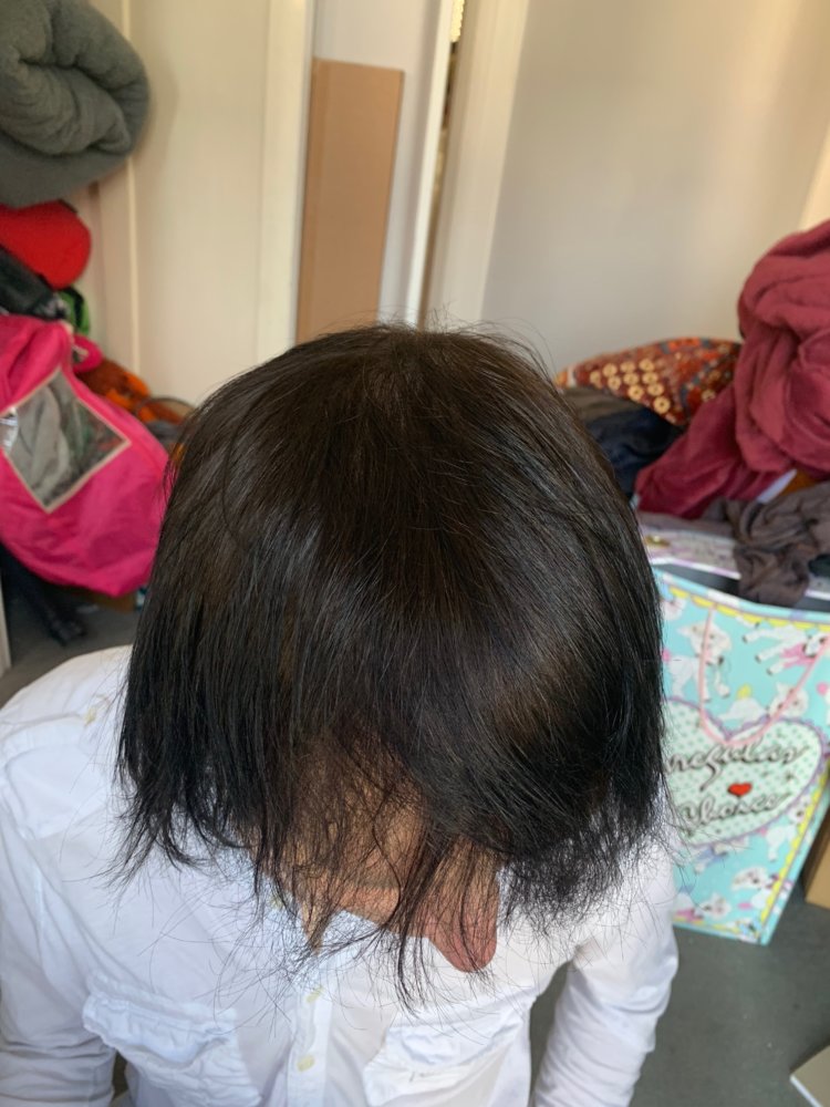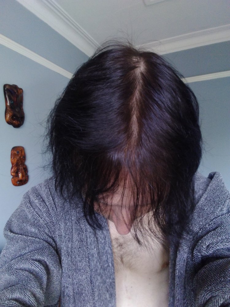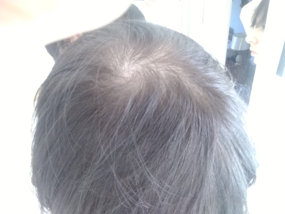 These pics are taken after one year. The first 2 are with wet hair, one with a partin deliberately drawn. The other 2 are with dry hair, again one with a parting deliberately drawn.