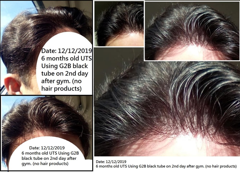 The pictures below are the same UTS system from the first posted (over 6 months old). I only wash it with water and don't use any hair products. I really think it helps extend the longevity of the hair system. The skin base still looks brand new and no color fade and hair shedding.