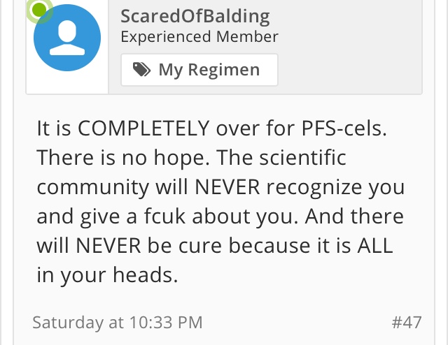 Maybe in the future there will be more convincing studies done on PFS, but as of this moment the evidence is very limited. The scientific community agrees with me on this. But I don't think website like PFS foundation are necessarely a good thing, they link the most random side effects to finasteride, even years after taking it.