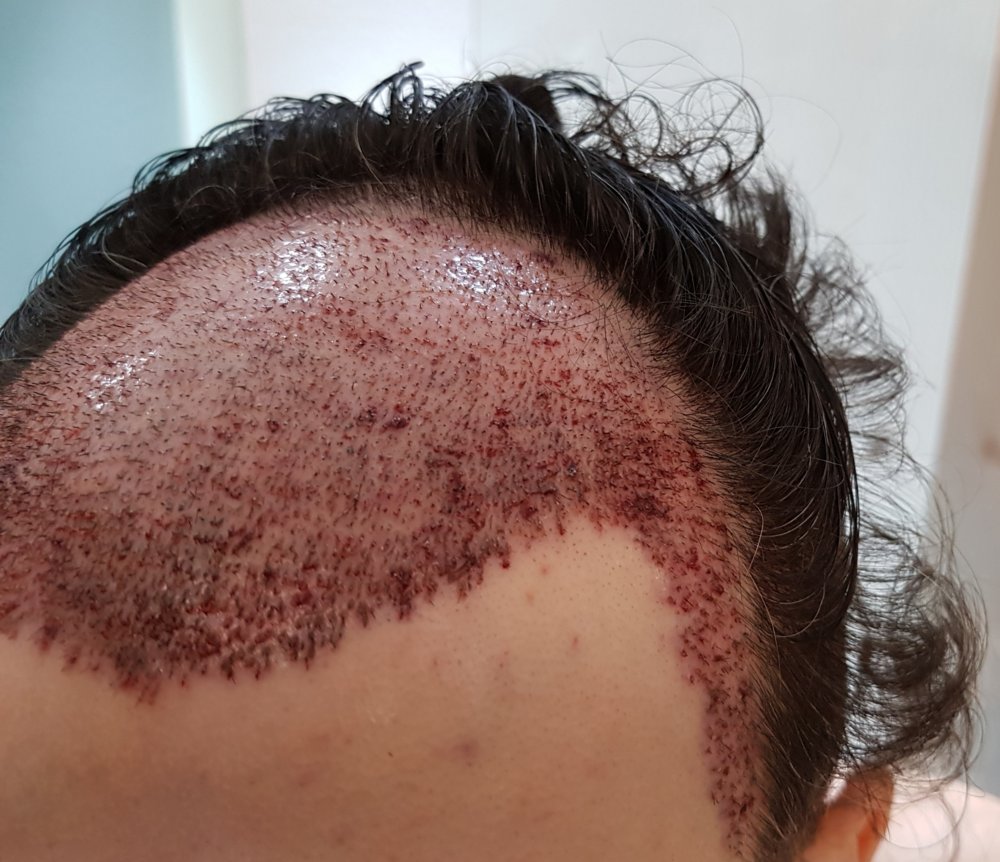 8-9 days post my FUE I noticed that flakes and scabs were loosening on my scalp and so would start to gently massage my scalp. I noticed that along with the flakes, hairs would be attached. I never picked the scabs and there was never any pain or bleeding. By the end of day 9, virtually all scabs were removed.