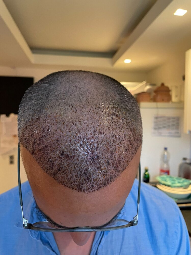 The donor area was generally in good condition but I have some scars on the back and sides of my head from my childhood. The team at Hermest documented these areas carefully before starting the procedure. The extracted grafts consisted mostly of doubles and triples and while the tissue and bleeding were normal I did experience significant swelling on both sides of my face after the surgery. I have also been using a 6 month hair care package and the regular follow ups with Yeliz have been very helpful throughout the recovery. My hair is currently growing in well and the density is increasing. I am satisfied with the professional aftercare and the treatment I received at Hermest. Now I am waiting for the final results to unfold.