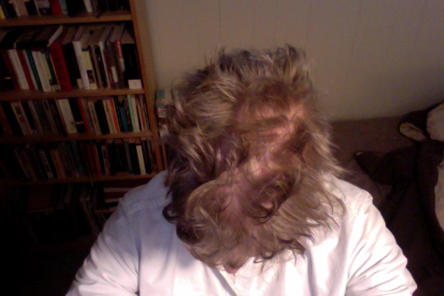 Now I'm coming off of probably the worst nine months of my life, I've been chronically sick (with piddly little illnesses, but I've been sick pretty much every month), insomniac (haven't slept a solid week probably since this last month), seriously depressed, unable to afford much food for months at a time, and, to make matters worse, I now seem to be balding. I noticed about five months ago that I seemed to possibly be thinning at the very top of my head "great" I thought, "now I can look forward to going bald in addition to how crappy my life is" and since then my hair has only gotten thinner, quite rapidly. A note on my state of health, I had insomnia to such a degree that I was routinely working until 1 AM, going home, falling asleep at probably 12 pm (or not at all) and getting up to go to work two or three hours later.