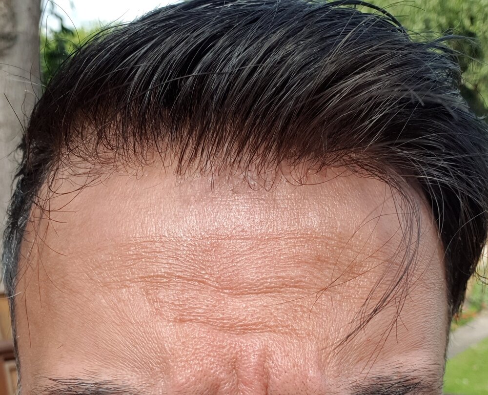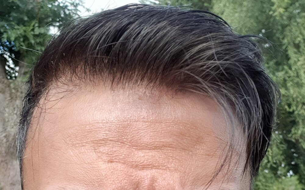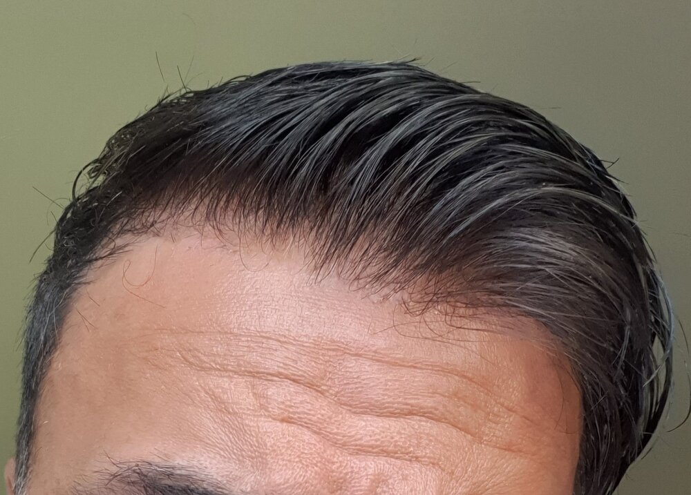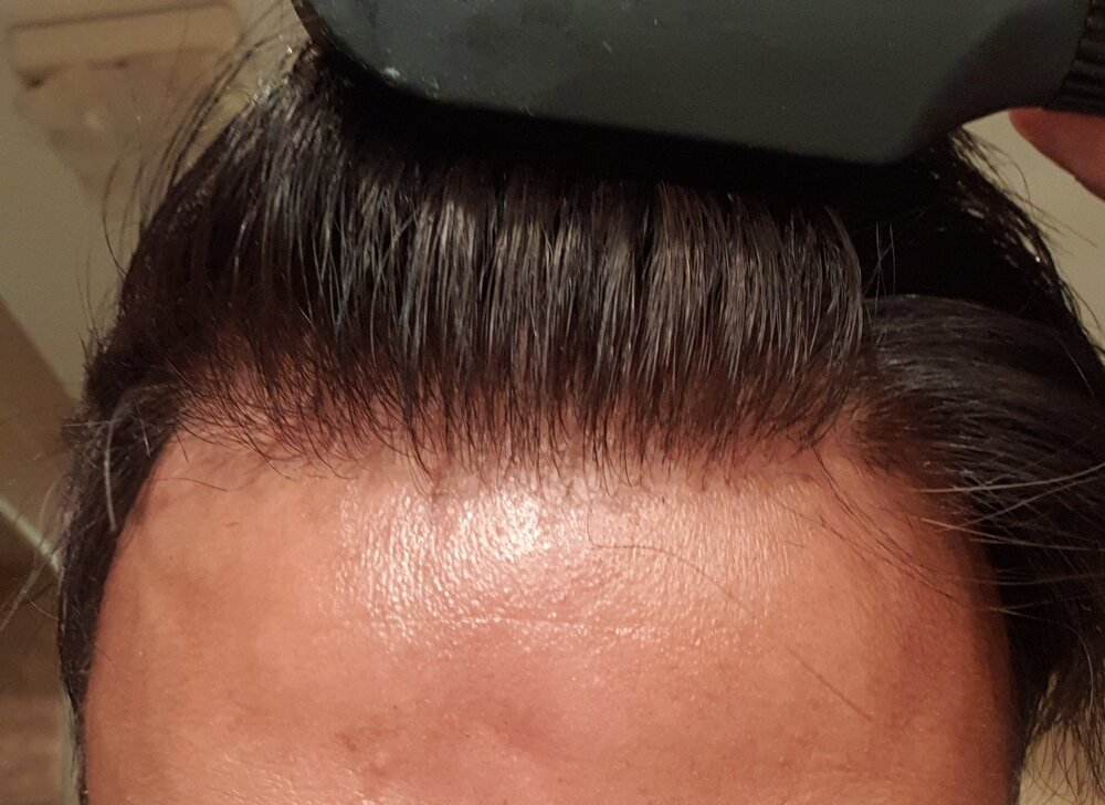 I am really happy with my latest system. Pics attached - don't mind the hair style, the hair is still puffy and needs to settle down, and I deliberately pushed the hair back for you to see the results. The hairline is what I wanted to concentrate on this time.