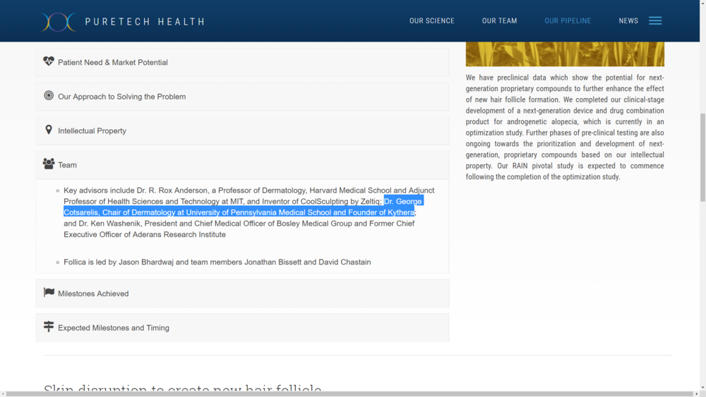 Maybe Kythera ? According to puretech, Doctor Cotsarelis is a founder of Kythera.