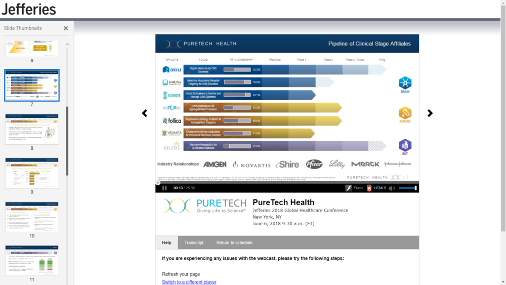 And here, we have also the puretech Health's presentation at the Jefferies 2015