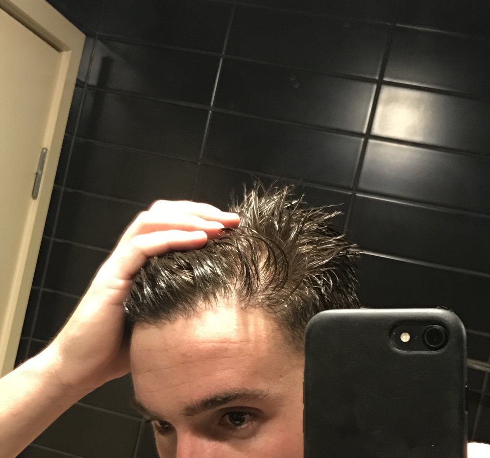 Just washed with keto 2% combed back and in bathroom lighting using phone flash.. please only constructive criticism I feel sh*t enough especially the hairline basically disappearing. Thanks
