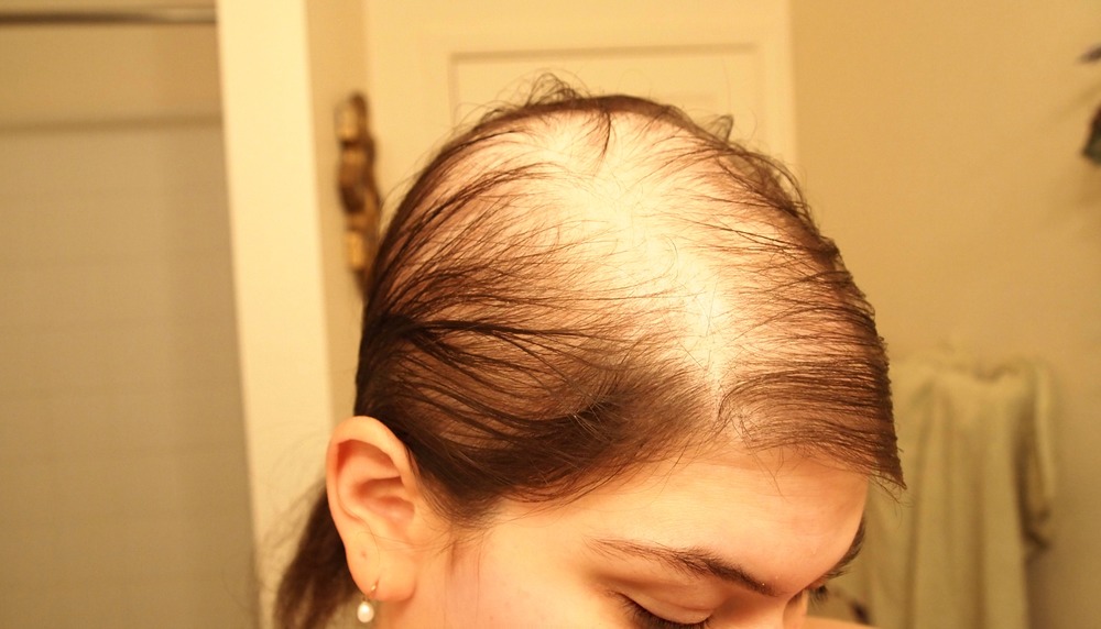 Here is a picture of a woman who clearly has male patterned hair loss, not female. It happens and it sucks, especially when as a woman you go to a doctor and they just tell you “women don’t go bald”.