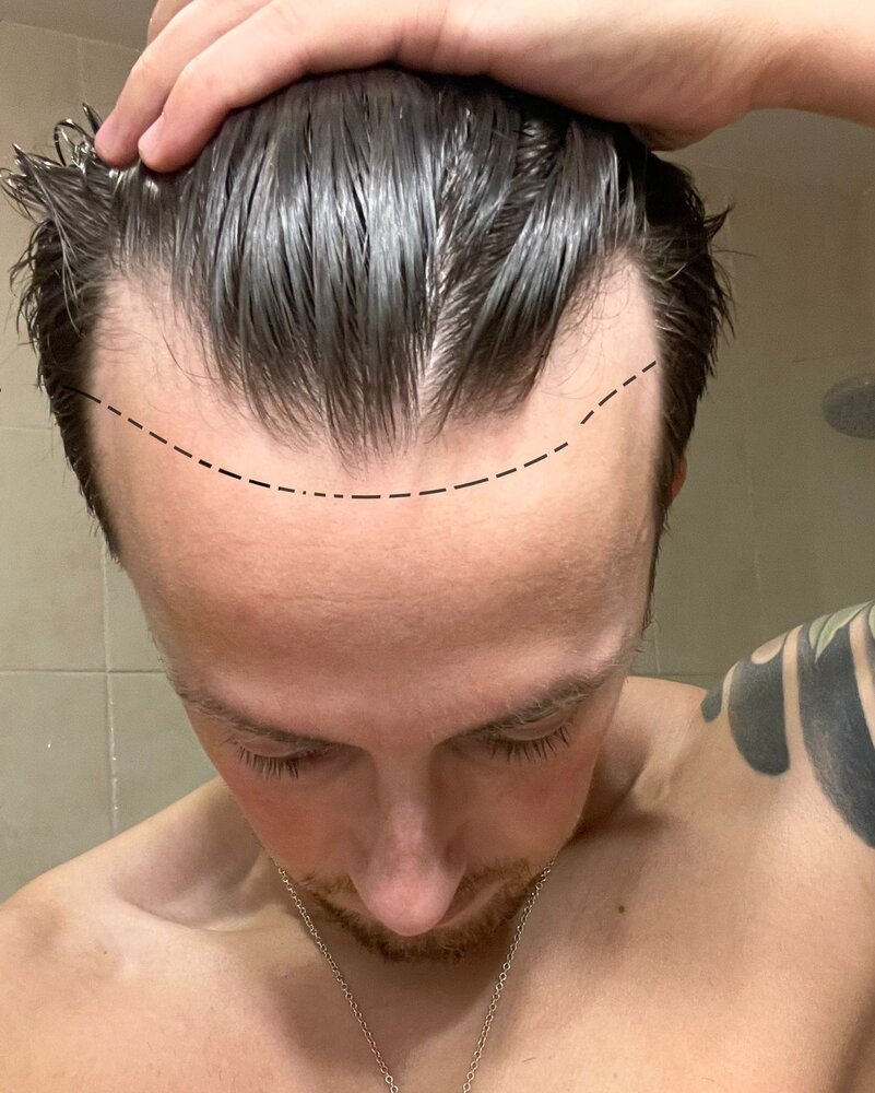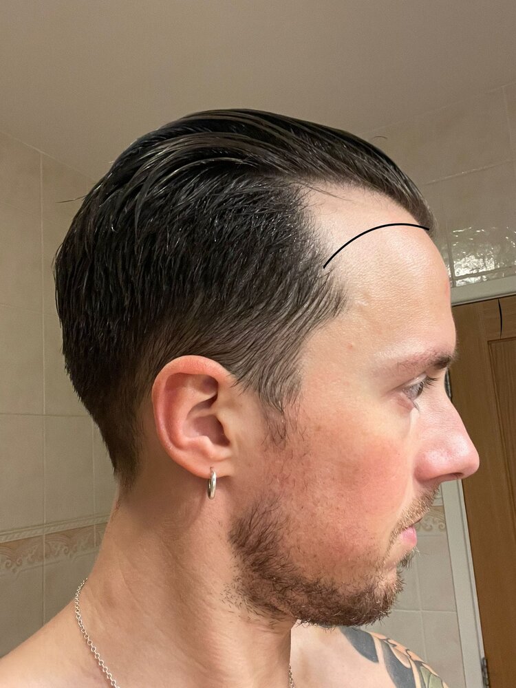 I think your current hair/hairline looks great on you. A matured masculine man look instead of the boyish doll low hairline we had when we were 12. Don't you get compliments, I bet you do.