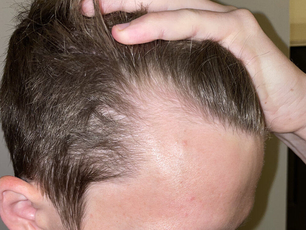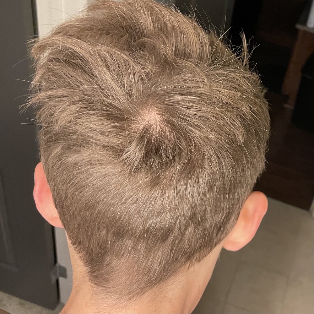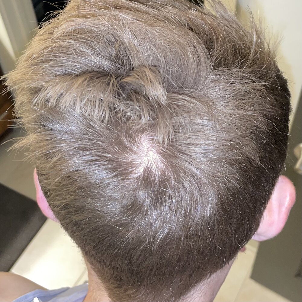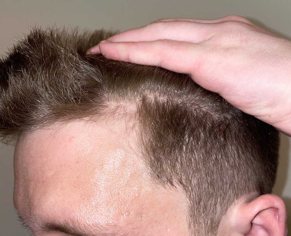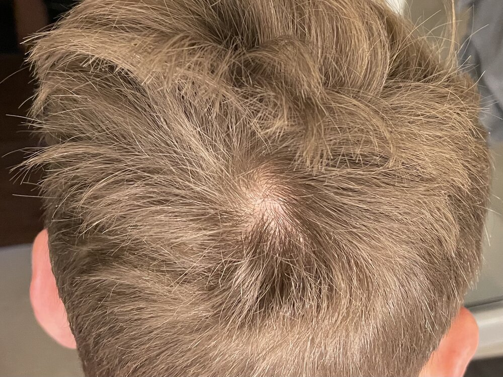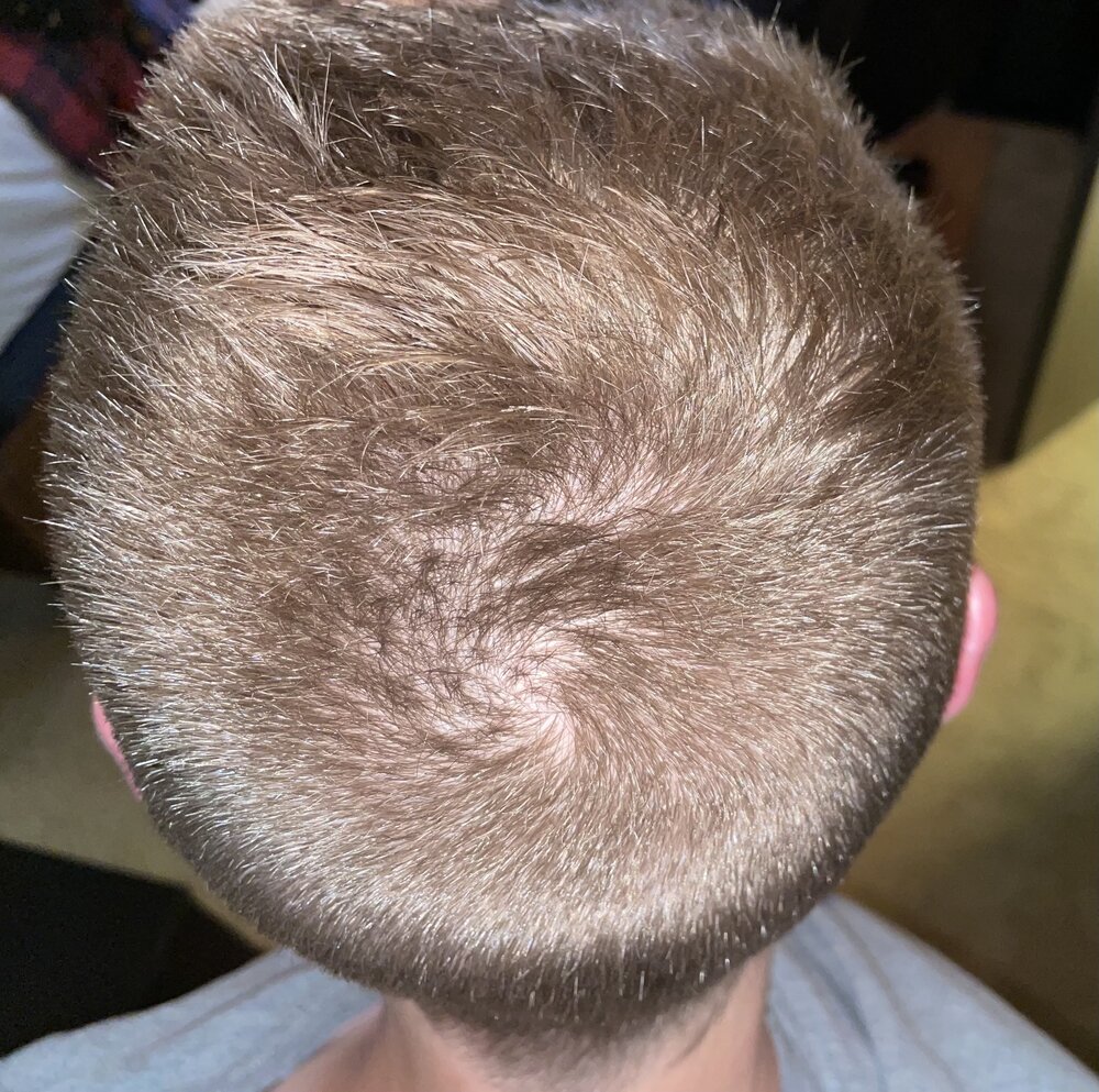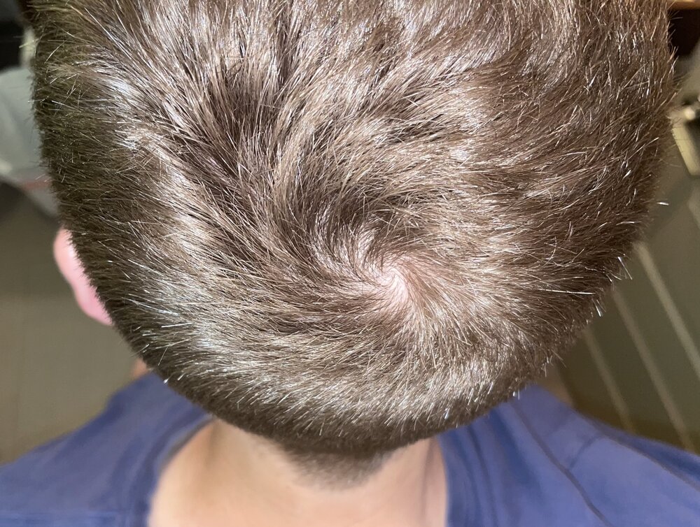 The temples are concerning. And I can’t tell if my crown is a cowlick or thinning or both. Thoughts? Should I start back dermarolling?