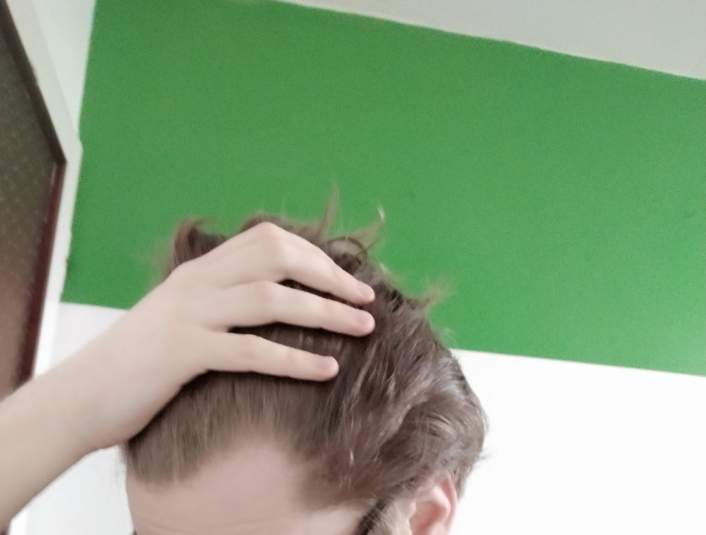 Can you take clearer pictures so we can see.In front of my head, I have some hair, which is thinner and shorter than other, but this amount is very small. And you're right it is not visible because of small amount of that type of hair.