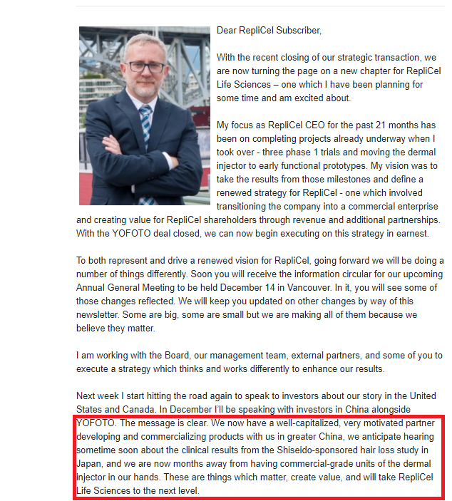 Basically, I think Shiseido is just repeating Replicel 's word in their presentation at BioJapan. Nothing new