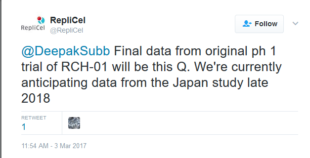 I'm curious too. I want to know if Shseido is obligated to share their research and advancements with Replicel. If not they may have merely procured Replicel's original methodologies (through the partnership) to bootstrap, augment or otherwise support their own research. Making several small investments and partnerships with potential solutions in a space doesn't seem unusual. Anyone privileged to the terms of the contract? I want to believe Shseido is still advancing their own research/techniques.