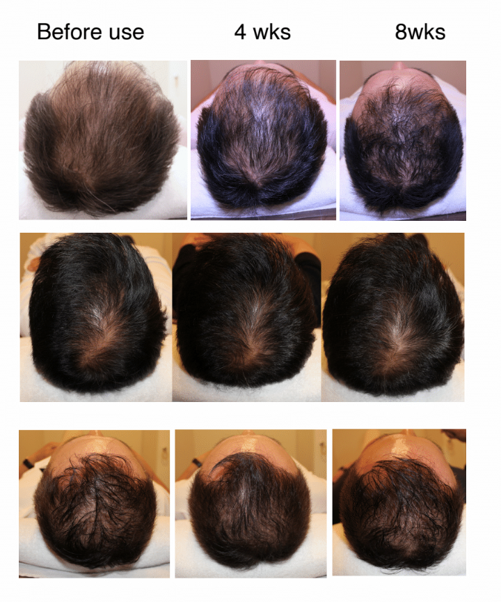 Personally I am losing faith in this product. Celino sent the early bird customers an email with these before and after pictures. I can not really much of a difference however this is only 2 months. I know most people do not see improvement after 2 months of Minoxidil (correct me if I am wrong), so perhaps there will be better results after 4-6 months.