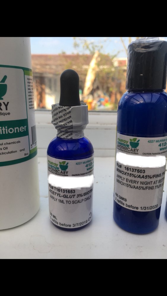 Murray Avenue Apothecary has been compounding the same products for years luckily I found these ladies as an alternative. You can do a search on their background but their details are below. Once they receive your prescription they will than formulate you the products. I did my best to reduce prices to help us forum members, Price list if you guys have forgot are on hairsite website, typical Dr Klein sold 60ml prescription lotion 15% Promox for $84, Murray Avenue Apothecary sells 65ml the for $89, but with discount if purchased 3 bottles and mention Jazz as per forum.