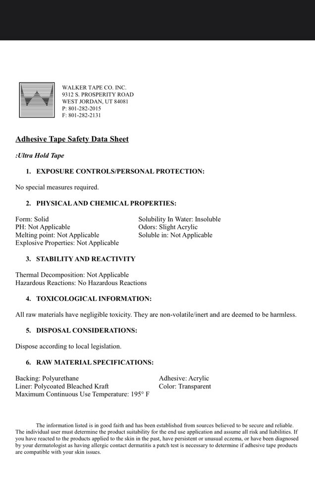 This is why it's dangerous to do exactly what you're doing. Respectfully, you are not understanding what you're reading.SDS sheet for ultra hold tape….