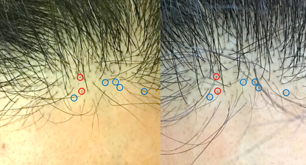 Since I started the treatment I have lost a lot of hair, and 3 weeks ago started to see baby hairs everywhere. In the vertex and also out. In zones I have not had hair in 10 years. Surprisingly, They are becoming rapidly terminal hairs.