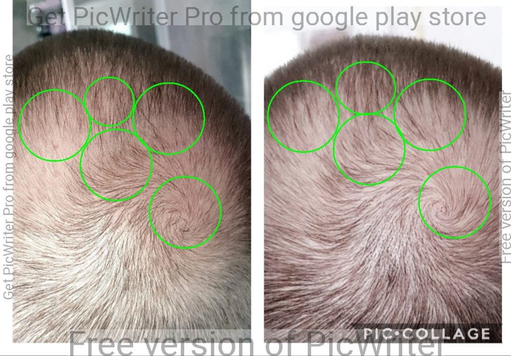 Notinmywatch, thanks for doing that. I have lately been taking pictures almost every day and in my view, a follicle to follicle comparison is useful and necessary, but I have noticed that things can often change fairly quickly. Some small wispy follicles can seem to disappear or miniaturize in a matter of days - some seem to have fallen out (shedding). Others can seem to appear fairly quickly, (likely they have been there but have recently thickened or darkened).