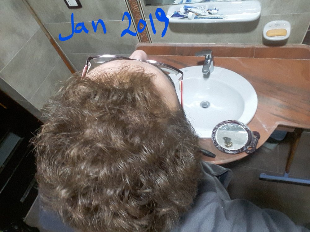 As soon as she saw my hair looked somewhat decent and normal. she was like "It's no where near as bad as you described". She barely did any examination, described two generic hair tonics and sent me home, again not addressing the main issue of male pattern baldness, not asking about my genetic history or anything, just a bunch of stress and malnutrition to take care of with these tonics and you'll be good to go, I was at my final year of high school so studying occupied most of my time so I just followed the prescription and shaved my head off to prevent distractions, after my hair grew out a bit I made sure it was short enough for the hairloss to be visible went back to her, finally got taken seriously and was prescribed Minoxidil 5% and Nizoral shampoo(as I had inflammation on my skin due to subherroic dermatitis as previously mentioned) for the first time near the end of my senior high school year.