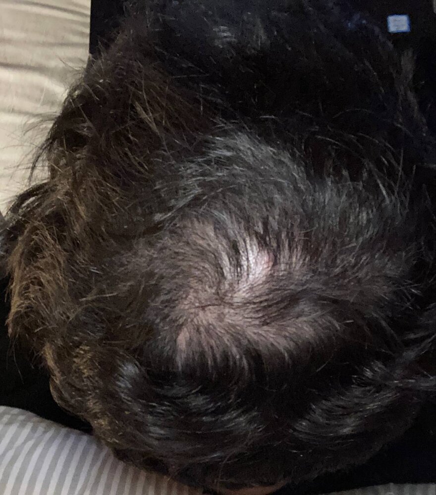 I'm a 26 yo male, I have had this hair thinning area on my crown, with a lot of visible scalp for more than 6 years, with a very mild evolution. Actually I noticed about it first at high school. 5 years ago it was already very noticiable, but it have worsen gradually in the last two years. In the forehead, also the hairline might be thinning a little, but not noticiable as my crown.