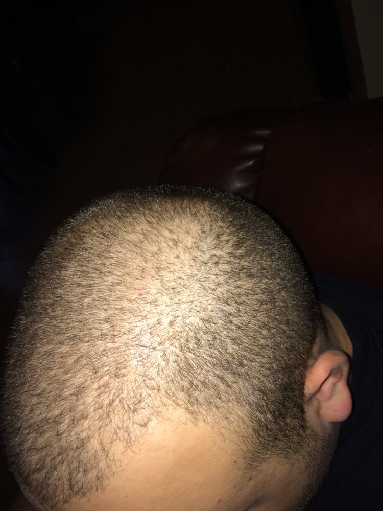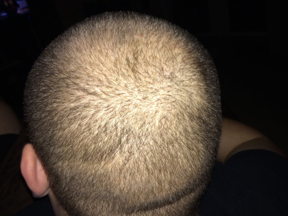 Been buzzing with a number 1 the past year or so with decent results. Recently let my hair grow out for a few months, but didn't like how thin it was, so I buzzed it with a number 2. I prefer this a bit to the number 1 because I don't need to put sunscreen on my dome lol. Hair looks the same in natural light as it does with camera flash. Should I stick with this?