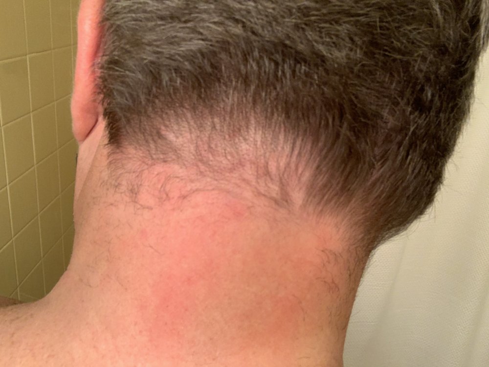 ----- In all your photos you've ever attached the skin on your lower back & neck is reddish. This is not normal.