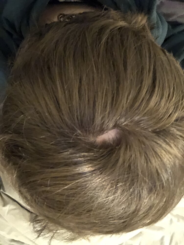Small, bald patch on crown? Is this balding? [Photos Included]