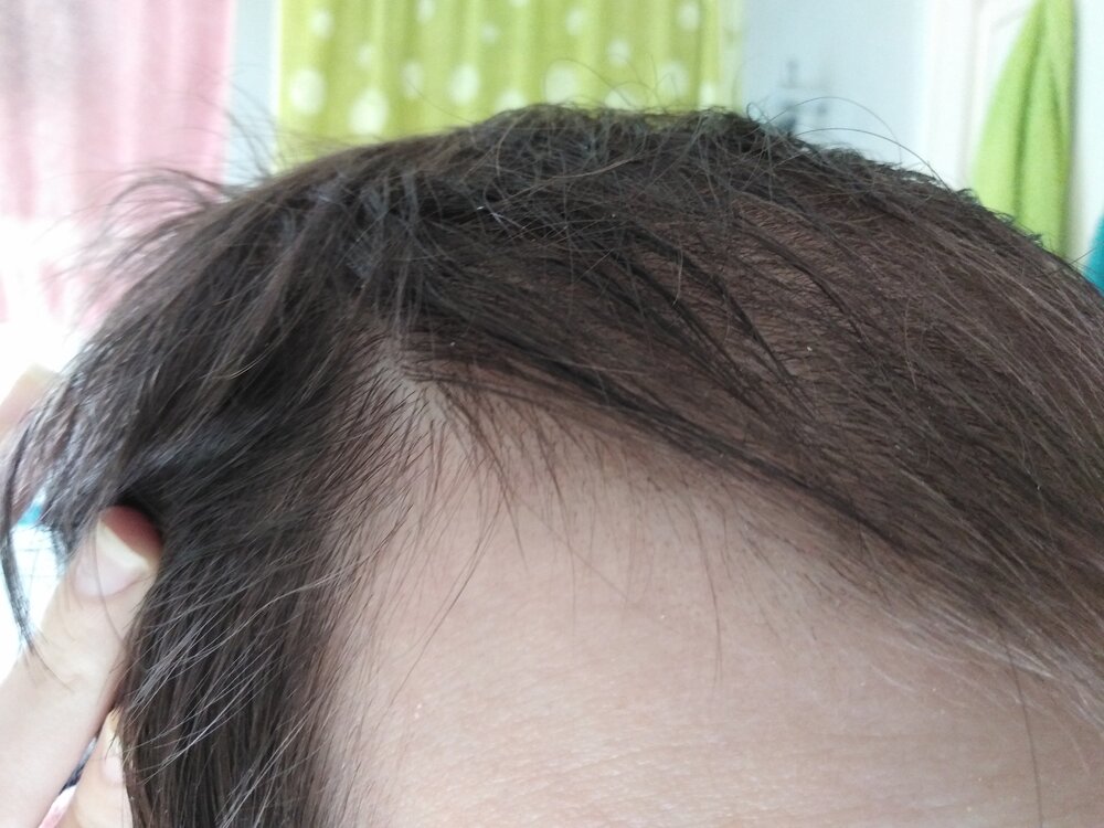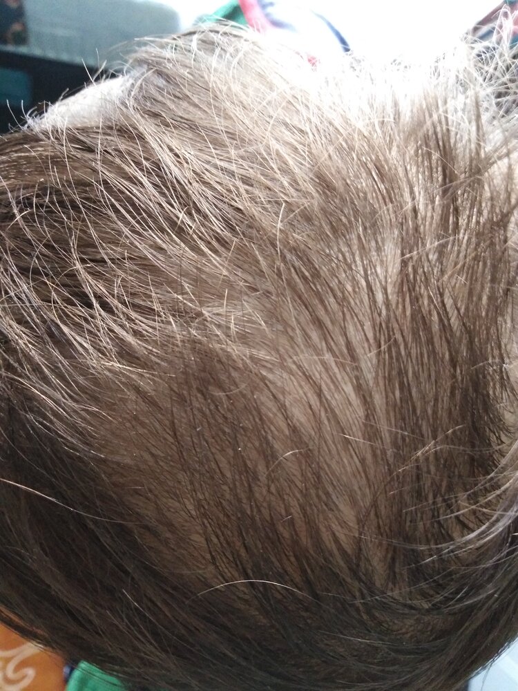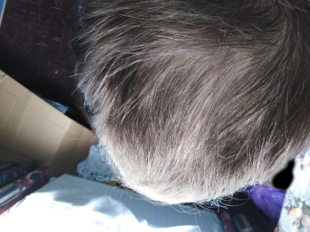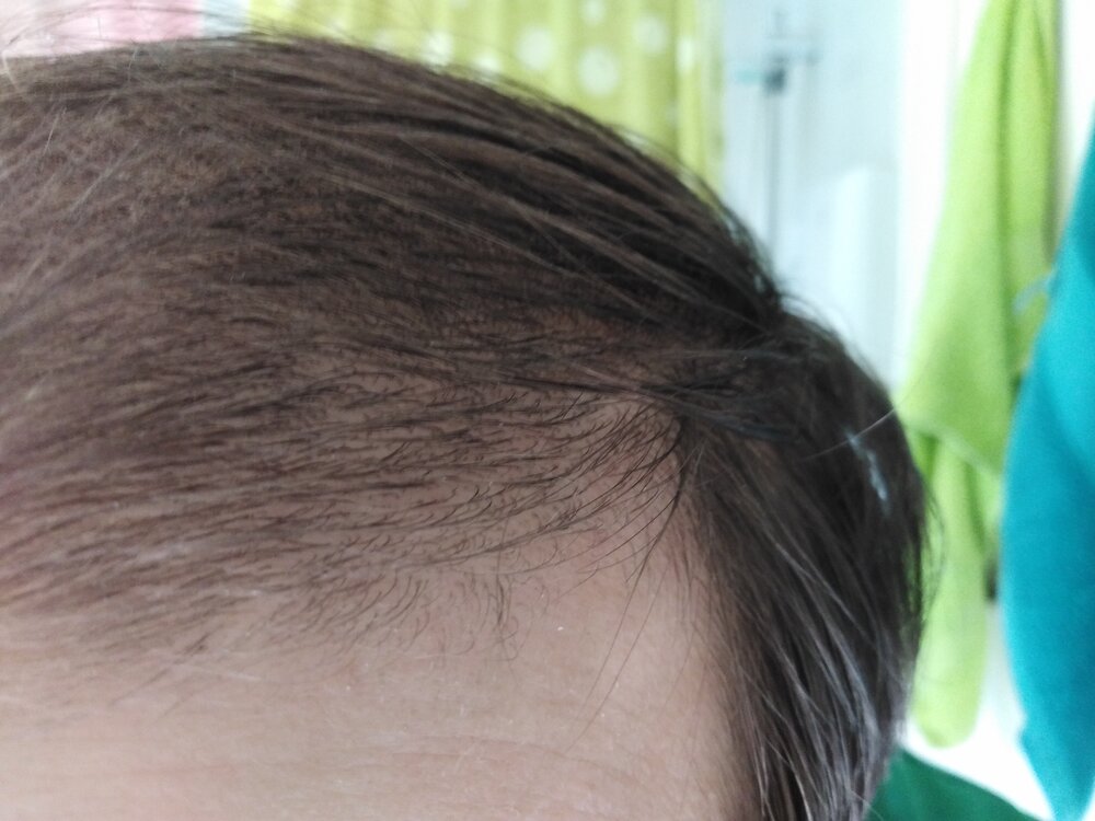 -Crown also looks better, remaining bald spots haven't filled in yet, but the hair is much healthier, it looks strong and has regained it's natural dark color.